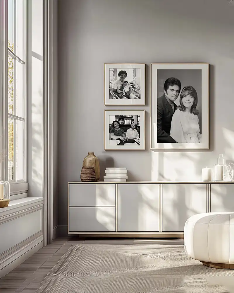 Her expertise in historical photo restoration and gallery wall design ensures your family’s past and present are beautifully woven together in tangible art pieces you’ll cherish forever.